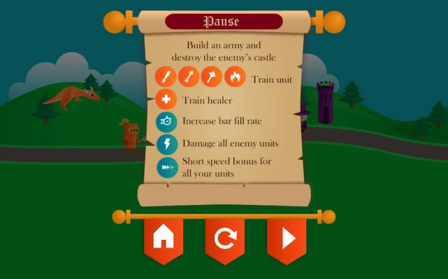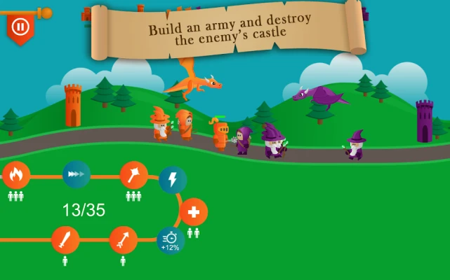 Create an army of swordsmen, archers, mages, knights and dragons to destroy your enemy.