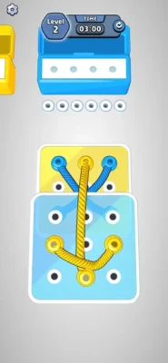 Test your skills in Tangle Sort! Untangle colorful ropes and sort the pins into the boxes. Easy to play, challenging to master. Are you ready to unravel the chaos?