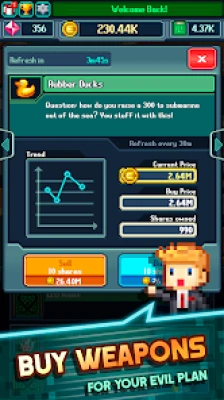 Recruit henchmen to your cause – from the legendary Big Bad Wolf to Foxx the Cyborg, each character has their own unique skills to help your quest to become an evil titan. Upgrade your henchmen to improve their success rate in trades, intel gathering rate and combat skills.