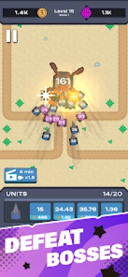 Strategy Battles: Strengthen your tank army to withstand increasingly formidable waves of enemies. The game merges casual RTS game with incremental gameplay, allowing you to refine your idle strategy with each new level.