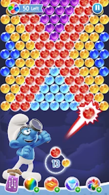 - Pop, blast, and match bubbles in a captivating bubble shooter game with The Smurfs.
