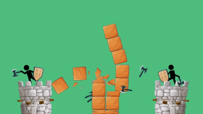 Each player is on his turret and you need to hit an ax in your opponent before he splits your skull with his ax.