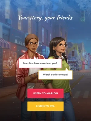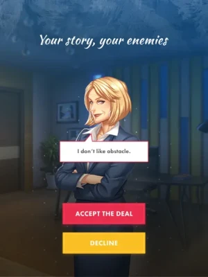 The heroine is caught in the middle of a love triangle and will have to choose between Dan Walsh and Cary Hughes and overcome the obstacles that will come along her way. Live your interactive story and your love story today.