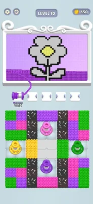 If the color in the picture matches the reel in the slot, the threads start to weave.