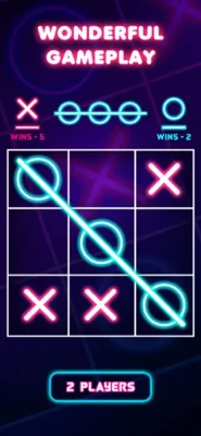 New tic tac toe o x game includes Glowing graphics. This new tic tac toe 2 player offline game supports glow themes. Noughts and crosses game have beautiful graphics and it's free game.