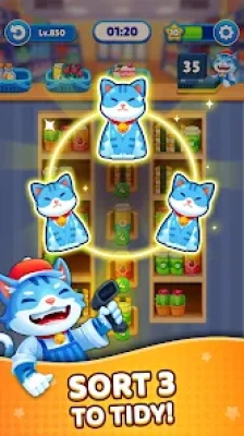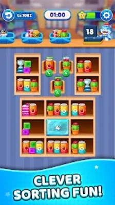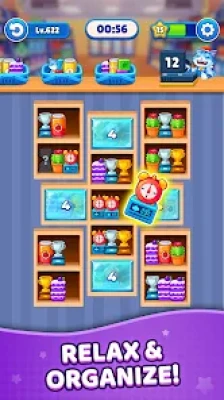 HOW TO PLAY: Simply drag and drop items between shelves. Match 3 identical items on the SAME shelf to clear them! Think ahead! Only the top item in each stack can be moved. FEATURES: ONE-FINGER CONTROL: Easy and intuitive gameplay. FREE & FUN TO PLAY: Enjoy hours of sorting joy. ADORABLE CAT GUIDE: Let our Blue Cat cheer you on! HUNDREDS OF LEVELS: Endless shelves to organize and master. RELAXING & REWARDING: Unwind with satisfying sorting action. Ready to become a master shelf sorter? Download Tidy Shelf Sort now and let the tidying begin! 🐱✨