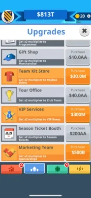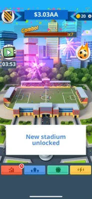 Tap, tap, tap to encourage fans into your stadium. Earn money by investing in merchandise, club tours and tasty food. Boost your profits with lucrative TV deals and attract the interest of mega investors.