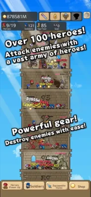 - Fill dungeons with heroes and attack monsters with your vast army!