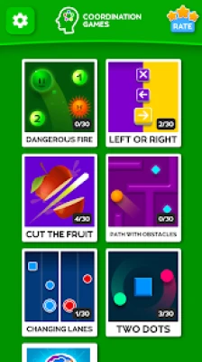The different games of this app work different aspects of coordination such as accuracy, synchronization of both hands and fingers, fine motor, spatial orientation, the reaction speed or reflexes.