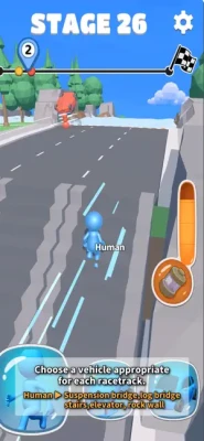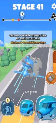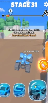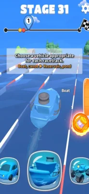 Depending on the type of obstacles, continue the race with a four-wheel bike, boat, airplane, etc.