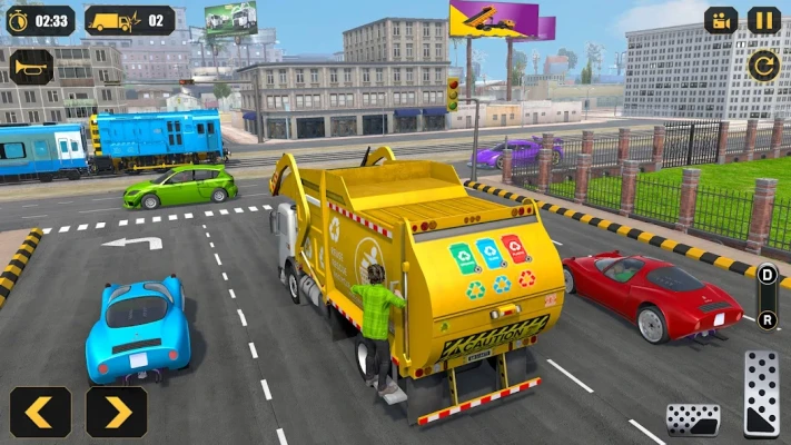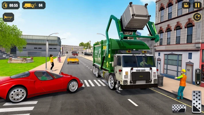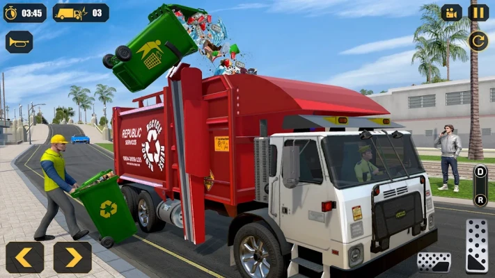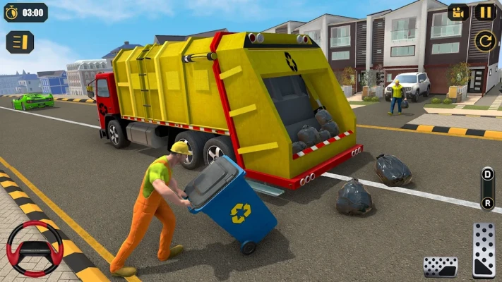 You are employed in a waste collecting company to collect municipal solid waste. Park your garbage truck in the parking area and dispose of garbage from hills into the dumping zone. Clean City Trash by lifting up recycle bins from the town roads to empty garbage containers.