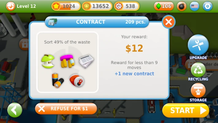 The rules are simple and funny. Sort the garbage just as you do in real life, 3 in a row or more. You’ll be amazed by the awesome rewards appearing on the screen with spectacular blasts and special magic effects!