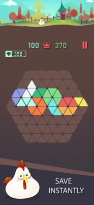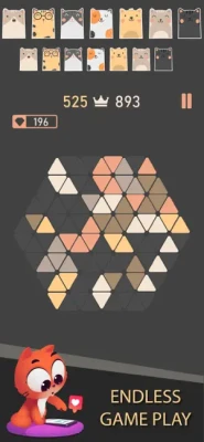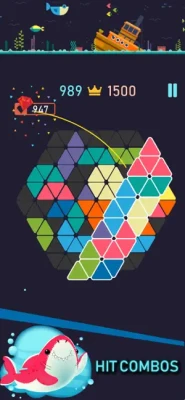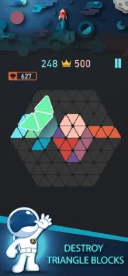 The concept is simple - on a triangle board, combine puzzle blocks and clear the board by placing them strategically to create lines. Clear multiple lines at a time to get diamonds.