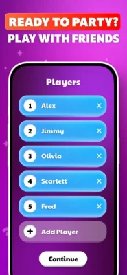 Setup: Enter the names of all participants into the app and select a game mode (ranging from "Casual" to more "Extreme" categories).