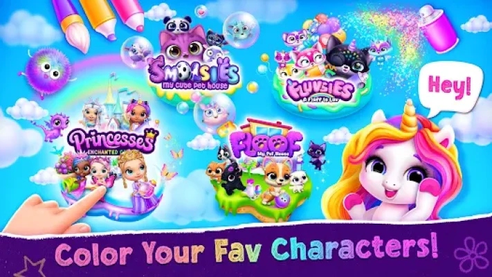 TutoTOONS friends live on coloring book islands! Who will be the lucky first pick for your coloring book drawing session – cute pets, Fluvsies, Smolsies, Princesses, or cute pets from the Floof house? Take a trip to a coloring game island, choose your drawing mode & learn to make cute pets from this neon coloring book glow!