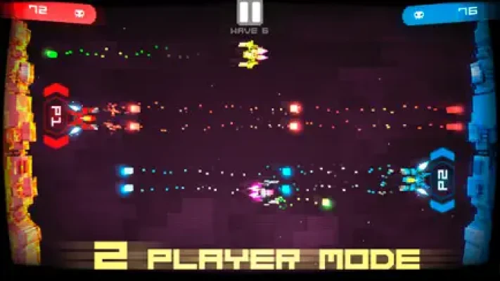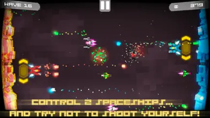 Fight increasingly difficult waves of invaders controlling two starships that are facing each other. Shoot enemies before they get you… but beware, because your ships can also shoot each other! Try conquering the high scores by yourself or bring a friend and play on the same device with the 2 player cooperative mode.