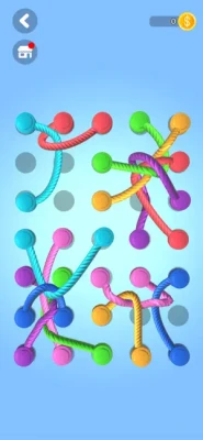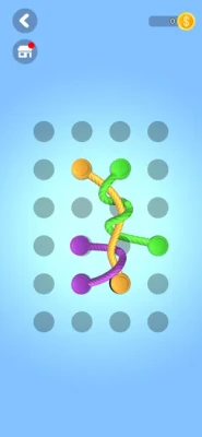 Players must strategically plan their actions to achieve this within a set number of moves. Each level presents players with a unique tangled rope puzzle, resembling a complex web of knots, loops, and twists. The rope can be moved in various directions by swiping or tapping on the screen. The challenge lies in figuring out the most efficient moves to untangle the knots and release the trapped ends of the rope.