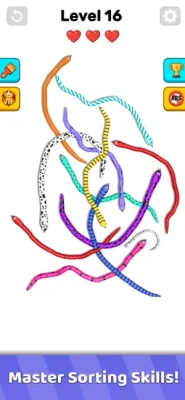 Get ready for the enchanting tale of "Twisted Snake: Sorting Game" where you hold the key to unraveling this exciting adventure and saving the snakes from their tricky situation.