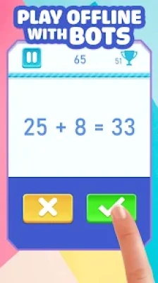 The online customize competition is the best thing of this math solver app. Choose arithmetic of your choice and then move to mode. There are three modes, 2 player games online and practice. In online Math Mode compete in educational games with anyone in the world. Just search player and start fight in the math playground. 2 Player math game Mode is to play offline with anyone near you. Split the screen and have cool math games with friends. Practice is to play with computer bots. Now enhance your learning by playing such school games for kids, which are best in productivity.