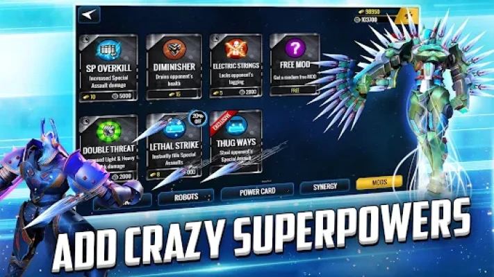 • Load up with power cards and overclocks to boost up your robots! Increase damage and armor, upgrade characters and specials and let loose the true might of steel!