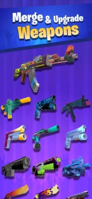 **Merge and Upgrade Weapons:** Collect and merge powerful guns to create even deadlier weapons. Enhance your firepower to confront the zombie horde with confidence. Earn XP, level up, and expand your collection rack to accommodate a vast arsenal.