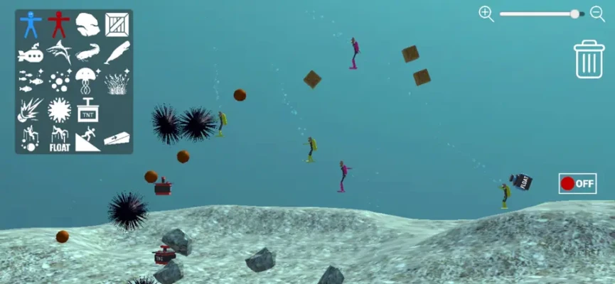 Get ready to explore the depths of the ocean in the ultimate underwater physics playground! Immerse yourself in a breathtaking underwater world where you can experiment with buoyancy, gravity, and more. With realistic physics simulations, you'll learn the basics of underwater physics while having fun. Choose from a variety of underwater rag dolls, fishes, creatures, effects, subnautic vehicle and enjoy our beautifully crafted ocean environment, from shallow reefs to shipwreck and deep-sea trenches. Master the art of underwater simulation and create your own experiences. Underwater Ragdoll Playground Key Features: -Realistic underwater physics simulations -A wide range of underwater rag dolls, animals, decorations, creatures, effect, vehicles to choose from -Beautiful and immersive underwater environments -Exciting experiences and hidden fun to discover and experience -Easy-to-learn controls and intuitive gameplay Underwater Physics Playground is the ultimate game for anyone who loves exploration, adventure, and learning. Whether you're a seasoned diver or a curious beginner, this game is sure to captivate and entertain you for hours on end. Download now and dive into the ultimate water adventure!