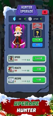 Diverse Levels: Explore unique, carefully designed stages, each requiring specific tactics to conquer. Take on formidable bosses with extra rewards waiting for skilled hunters, now infused with a festive twist.