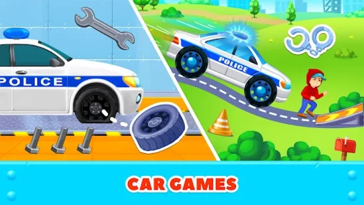 Cars: Build and repair your own police car! Once it's ready, get behind the wheel and chase down criminals in the city streets. Test yourself as a true hero!