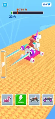 Sometimes you need a motorbike, sometimes a jet ski. In this amazing game, you can fly, mow the grass, clear the way, hover through the water… and if you are skilled enough, you can even ride a unicorn!