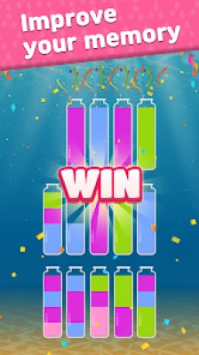 HOW TO PLAY: - Tap on one glass and pour water from that glass to another glass - You can only pour if the two tubes have the same color on top and have their own space to hold more water - Keep sorting colored water among the tubes until each tube is filled with one color - Don't worry to get stuck, you can restart the level anytime