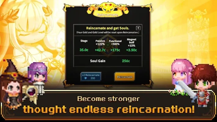 Use the materials that you get upon Reincarnation to increase your weapons' Soul Levels.