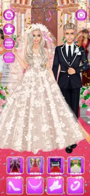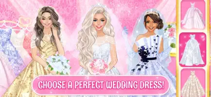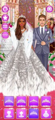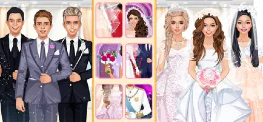 Pick one of the 8 grooms: a movie actor, a famous athlete, a Spanish prince, a Wall Street genius, a former IT wizkid, a conservative real estate mogul and more! 8 backgrounds (church, yaucht, restaurant, family estate and more) set up the tone for the marriage ceremony.