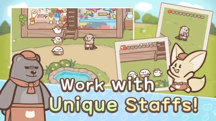 🐾 Diverse and charming staff 🐾 • Otter Town isn’t just for otters! Hire various animals as staff and work together to run the town! Each staff member has a fun story!