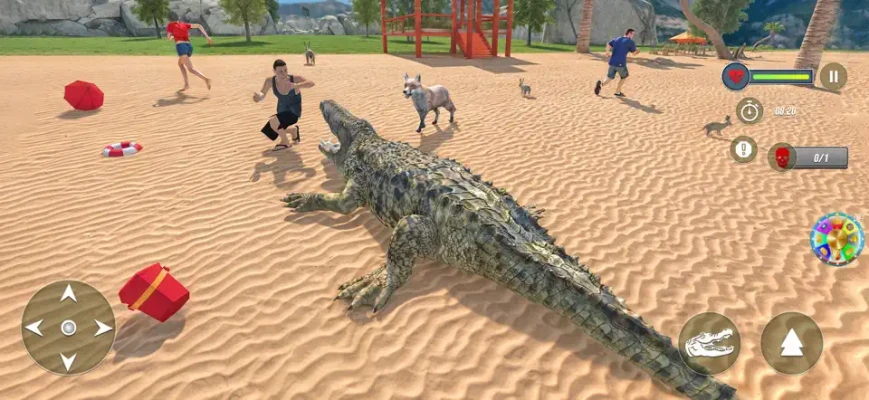 Play as a sharp crocodile killer and enjoy the devouring your prey. As a hunger crocodile, you can eat any living thing on the beach across the ocean and sea water and also attack on wild animals. See the world as an angry monster and you can attack on anything. Control your wild alligator in water and on beach land. It is created with high quality graphics and smooth controls. It all takes place in a fun 3D environment. It will remind you of the fun you had during summer vacation. Happy hunting and fishing. Become the killer crocodile on the beach and jump on humans who are here to spend their Christmas holidays. The crocodile is a beast and have wonderful hunting skills, It loves adventure so you can take it to explore the beach and city.