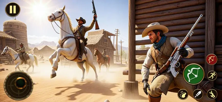 Gun Fighting - Engage in thrilling shootouts using classic Wild West weapons.