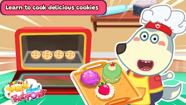 🍳 Your baby can play many cooking games but in Wolfoo Cooking: Making Snack, childrens will be running their own food factory. Learn the production process and participate in the cooking with delicious snack recipes such as: cookies, apple pie, fruit jelly, seaweed, surprise chocolate eggs,... Vivid and vibrant graphics help entertain the kids and make cooking more fun. Wolfoo makes snacks to help develop children's recognition, concentration, hand-eye coordination, and memory. Let's step into the virtual snack factory world with Wolfoo!