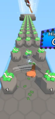 Shoot at the mines and collect ores with your pickaxe to improve your sword! The ores you collect will move from the left side to the melting furnace. The ores melted in the furnace will be filled into a bucket. Pour the hot lava ore in this bucket into your sword and combine different pieces.