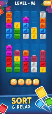 • Relaxing and Satisfying: Enjoy calming visuals and soothing sounds as you sort the blocks, making it a perfect game for relaxation.