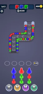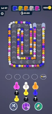 Tap on the spools and send them onto the conveyors. Each spool will collect thread balls of its own color, and once it reaches the required amount, it will contribute to the objective.