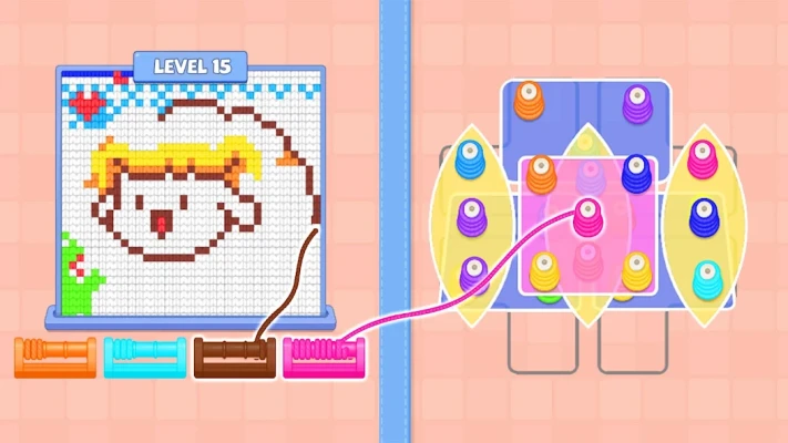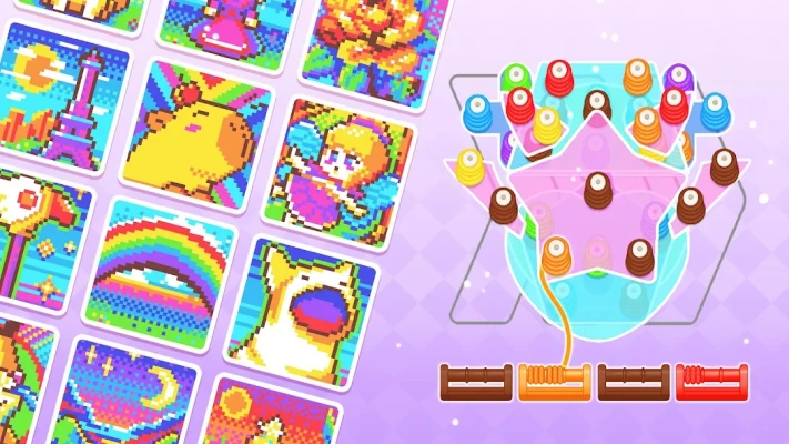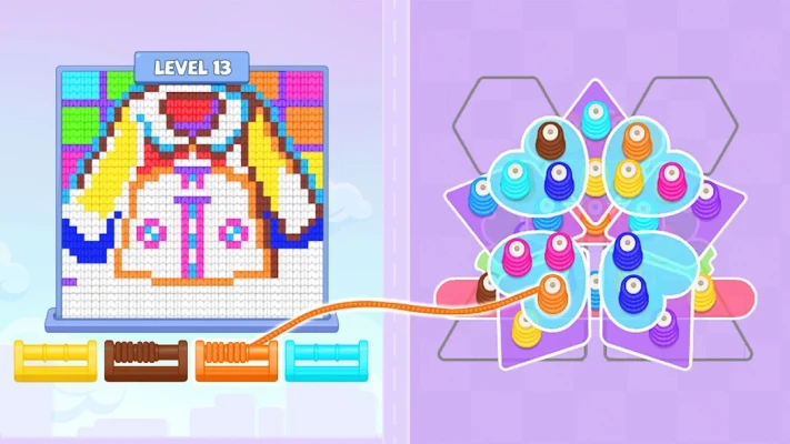 Plan each move like a wool sort expert. Complete objectives to unlock new artistic tools. Don’t just play - create through calculated wool puzzle solutions, turning challenges into chromatic masterpieces!