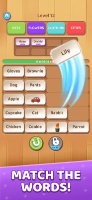 Looking for a calm yet stimulating word game? Match words by categories in this smart, satisfying puzzle experience designed for adults. From simple themes like colors and animals to trickier ones like fashion, science, and space — your brain is in for a treat. Take a break, clear your mind, and challenge yourself one tile at a time. No timers. No pressure. Just peaceful gameplay that trains your focus and memory — all while having fun. - 100s of handcrafted levels - No timer, no stress — just you and the words - Perfect for adults & seniors Whether you’re into words, trivia, or just love solving smart puzzles — this is your cozy corner of calm and logic. Breathe in. Tap. Match. Repeat.