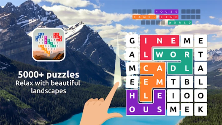 Find words by connecting letters together on the game board and enjoy levels of word search puzzles or fillwords set against picturesque natural landscapes.