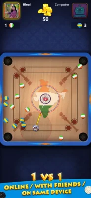 Carrom is among very famous internet board games in India and various countries and one of the best tabletop sport board game. Pot all the coins before your opponent to win the game! Experience carrom with friends or against real players in play online multiplayer PVP mode or play local multiplayer. Show your best carrom skills against computer or real opponent.