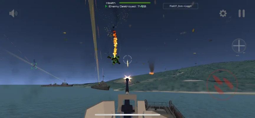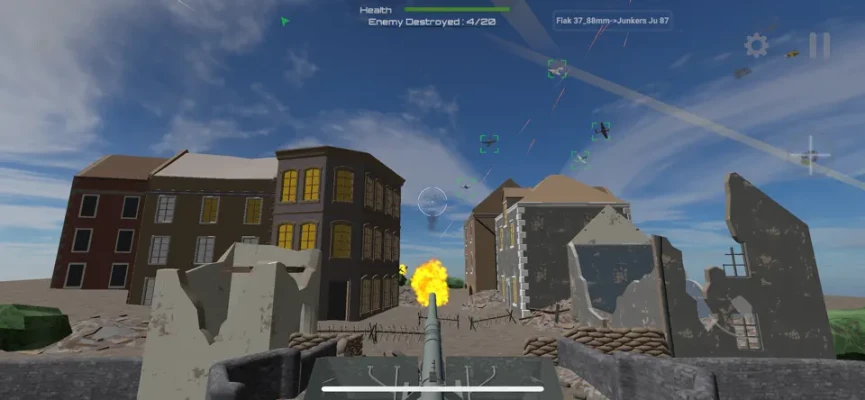 Now you can be a Anti Air gun commander of World War 2 (WW2) and defend your position from air attacks! Features: 1. Type of AA guns * Flak Turret guns * Flak Vierling * Flak Willing * Oerlikon 20 mm * Goryunov * MK 303 Flak (Will be added upcoming updates) * Bofors (Will be added) 2. Types of Enemies * Messerschmitt Bf 109 * Mitsubishi Zero fighter * Supermarine Spitfire New enemies will be added sooner! 3. Three different light modes * Daytime * Twilight * Night 5. 2 Different operation maps. New maps will be added 6. Upgrade system to improve accuracy, fire rate and range. 7. Progress levels to get new army rank badges. 8. Two different control modes * Joystick * Touch It is free and always will be! Enjoy commander!