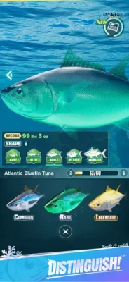 - From colorful reef fish to giant deep-sea monsters, every catch is a new trophy for your collection.